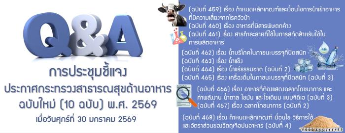 Q&A การประชุมชี้แจงประกาศกระทรวงสาธารณสุขด้านอาหาร ฉบับใหม่ (10 ฉบับ) พ.ศ. 2569