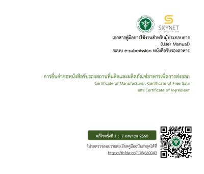 การยื่นคำขอหนังสือรับรองสถานที่ผลิตและผลิตภัณฑ์อาหารเพื่อการส่งออก